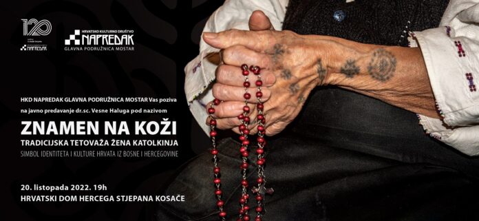 U organizaciji HKD Napredak Glavna podružnica Mostar u Hrvatskom domu hercega Stjepana Kosače održat će se Javno predavanje pod nazivom: ZNAMEN NA KOŽI – tradicijska tetovaža žena katolkinja – SIMBOL IDENTITETA I KULTURE HRVATA IZ BOSNE I HERCEGOVINE.