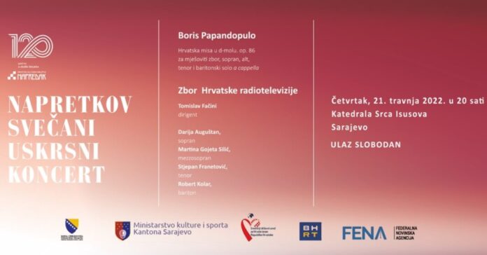 Poštujući tradiciju održavanja uskrsnih programa, Hrvatsko kulturno društvo Napredak u povodu najvećeg kršćanskog blagdana Uskrsa, ali i značajnog jubileja i to 120 godina od utemeljenja Napretka organizira svoj tradicionalni Svečani uskrsni koncert koji će sarajevskoj, ali i široj publici biti prezentiran u impresivnoj Katedrali Srca Isusova u četvrtak 21. travnja 2022. godine s početkom u 20,00 sati.
