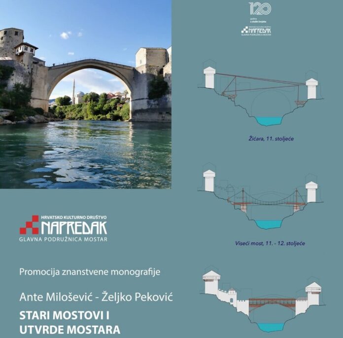 U organizaciji HKD Napredak Glavna podružnica Mostara u četvrtak 27. listopada 2022. s početkom u 19 sati u Hrvatskom domu hercega Stjepana Kosače u Galeriji kraljice Katarine Kosača bit će upriličeno predstavljanje knjige „Stari mostovi i utvrde Mostara“ (The Old Bridges and Fortifications of Mostar) autora Ante Miloševića i Željka Pekovića.