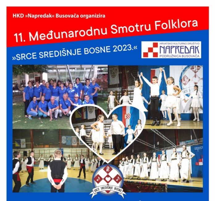 Hrvatsko kulturno društvo “Napredak” podružnica Busovača u subotu, 9. rujna, organizira XI. međunarodnu smotru folklora “Srce Središnje Bosne”.