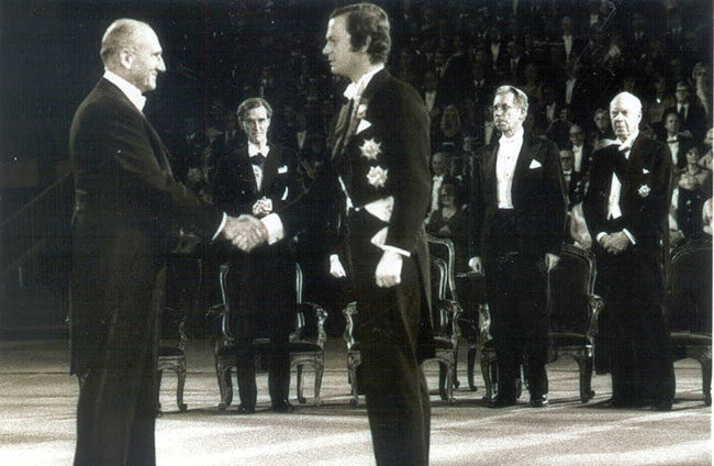 Nobelove nagrade se u pravilu tradicionalno dodjeljuju na dan smrti Alfreda Nobela 10. prosinca, pa je tako 10. prosinca 1975. u Stockholmu uručena Nobelova nagrada za kemiju za istraživanja u području organskih prirodnih spojeva i stereokemije prof. dr. sc. Vladimiru Prelogu. Stereokemija izučava prostorni raspored atoma i kemijskih veza u molekulama, tj. prostornu građu molekula.