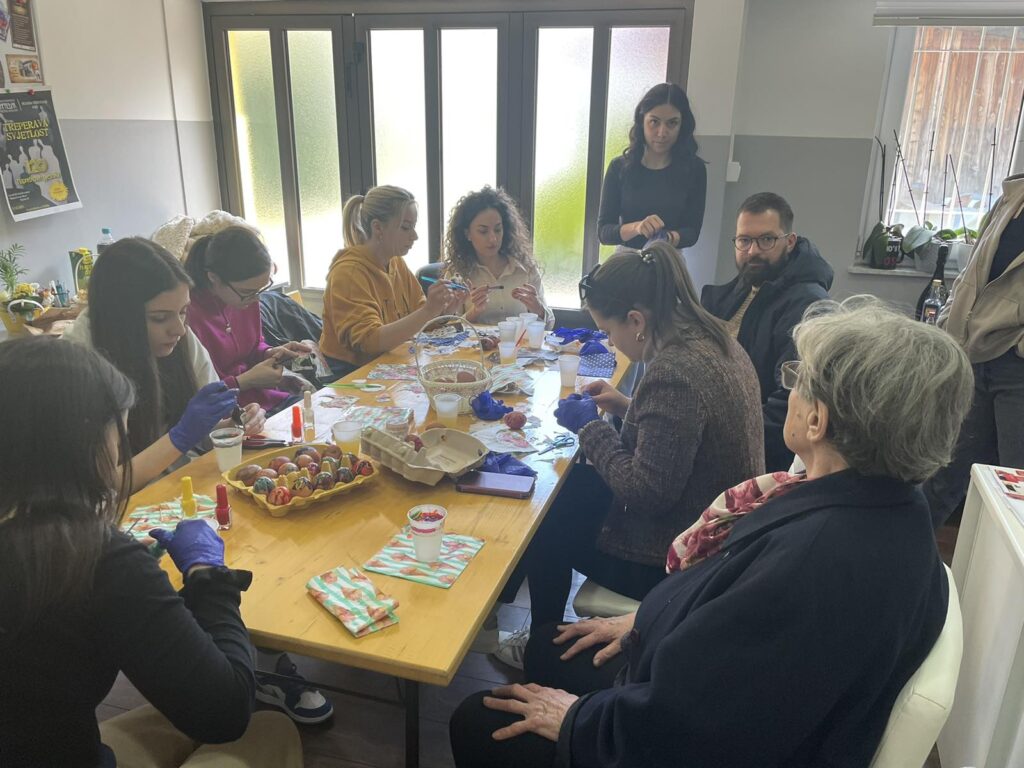 Među učesnicima je bilo i pripadnika treće životne dobi koji su uživali u druženju sa mladima i u učenju i savladavanju novih tehnika farbanja jaja, pritom dijeleći svoja iskustva u tradicionalnom farbanju.