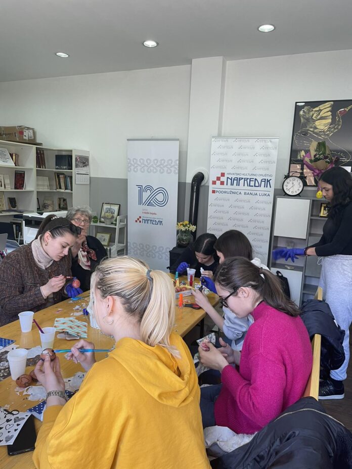 Povodom proteklih Uskrsnih blagdana, a pod pokroviteljstvom dopredsjednika Republike Srpske iz reda hrvatskog naroda gosp. dr Davora Pranjića, podružnica Hrvatskog kulturnog društva Napredak održala je umjetničku radionicu ukrašavanja uskrsnih jaja netradicionalnim tehnikama.